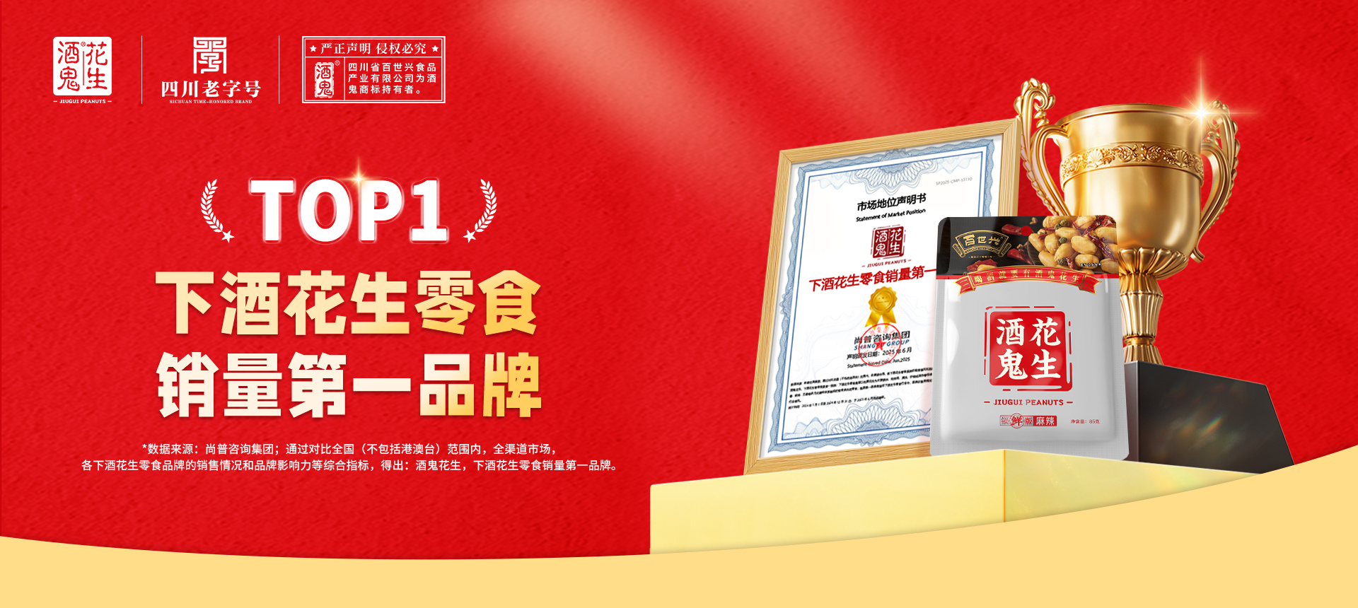 酒鬼花生是四川百世兴食品有限公司创立的品牌,总部设立于四川成都,是一家集研发、生产、销售为一体的花生休闲食品企业。荣获“农业产业化省级重点龙头企业”“非物质文化遗产”“四川老字号”等权威认证,经过二十余年的辛勤耕耘与不懈努力,已成长为中国花生食品行业的领导品牌。