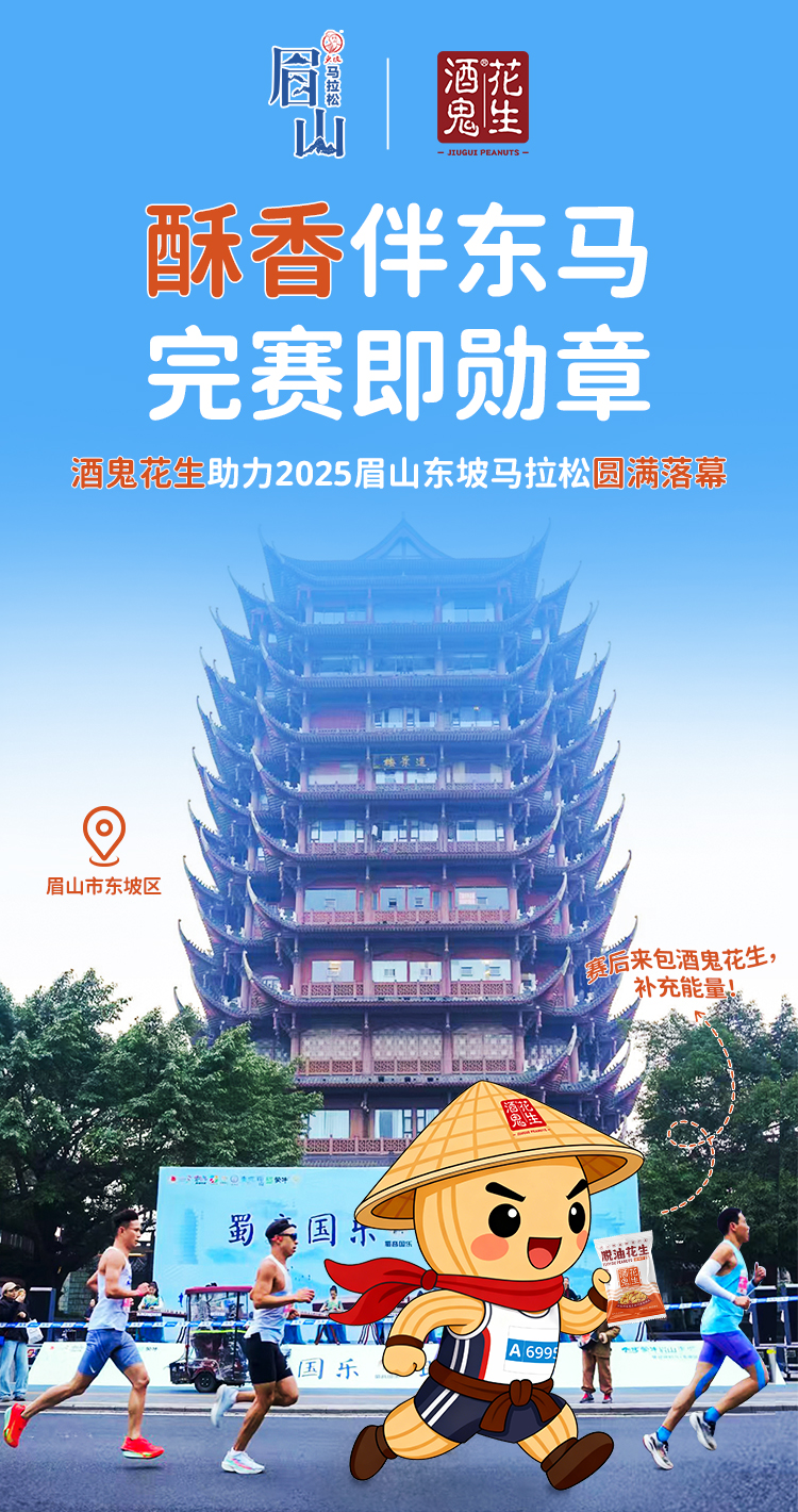 11月23日,2025眉山东坡马拉松圆满落幕!1.7万名跑者齐聚岷江之畔,以脚步丈量东坡故里的灵秀山水,用奔跑对话千年传承的诗书文脉。酒鬼花生作为本次赛事官方支持商,全程陪伴每一位跑者,共赴热爱之巅!为赛事注入满满的味觉记忆与能量支持。